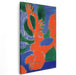 Introducing 'Flaming Dance,' a captivating abstract expressionist canvas art print that exudes vitality and joy through its bold use of color and dynamic composition. The artwork features a central figure depicted in vibrant shades of orange, seemingly in a state of graceful motion, set against a harmonious backdrop of deep blue and green tones.