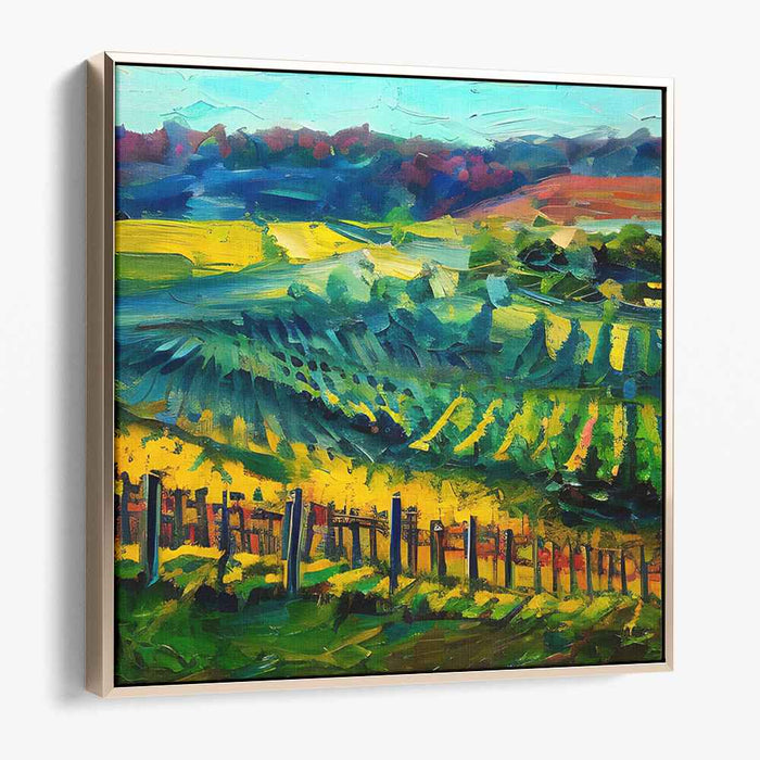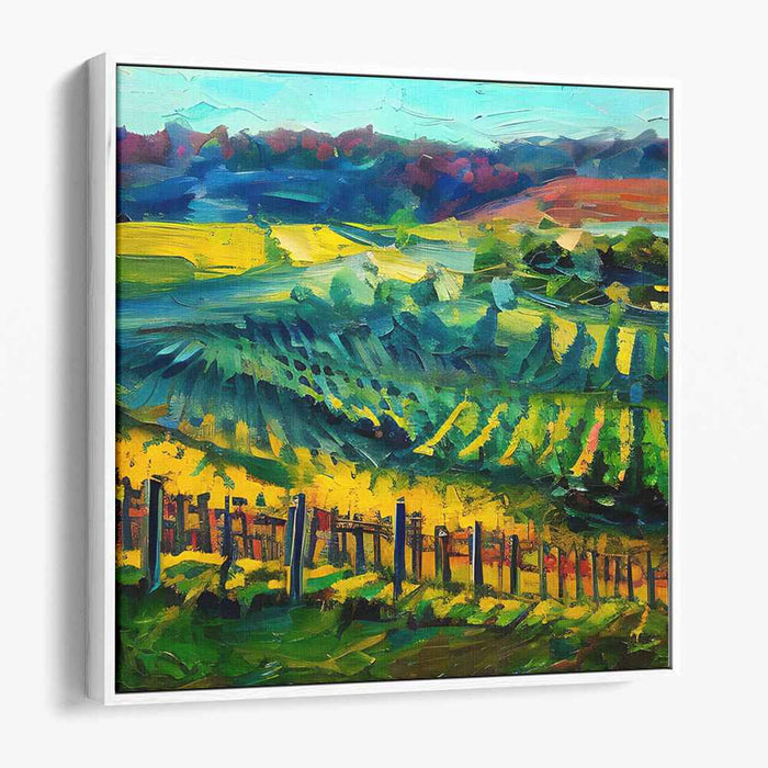 Acquire 'Fleeting Meadow: A Vibrant Landscape Canvas Art Print' and experience the allure of a sun-drenched vineyard in the comfort of your home. This contemporary masterpiece, with its blend of colors and textures, promises to elevate your decor and inspire a sense of tranquility and vitality every day.