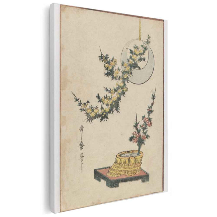Unveil the exquisite beauty of Kitagawa Utamaro's iconic woodblock print, "Flowers" (1806). This vibrant masterpiece is now flawlessly reproduced on high-quality washi paper, inviting you to immerse yourself in its intricate details and timeless appeal.