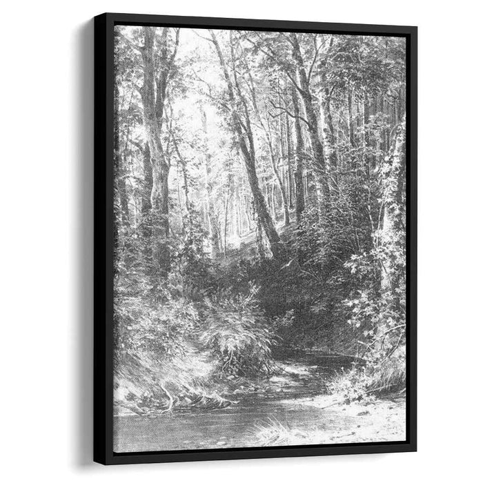 Immerse yourself in the tranquil beauty of Ivan Shishkin's iconic painting, "Forest Stream." This breathtaking landscape, meticulously recreated on high-quality canvas, transports you to the heart of a serene forest, where the harmonious interplay of nature's elements unfolds before your eyes.
