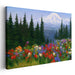 Frozen Blossom Haven: Wildflower Meadow with Snow-Capped Mountain Canvas Art Print