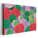 The artist's approach in this piece is flat and almost abstract, distilling the fruits into simple yet powerful forms that prioritize color and shape over intricate details. The result is a visual feast that exudes the essence of summer freshness and the pure pleasures of life, making it a perfect addition to any space in need of a pop of color and whimsy.