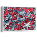 Introducing 'Geometric Frenzy: Bold Red, Blue, and White Abstract Canvas Art,' a captivating masterpiece that mesmerizes viewers with its dynamic interplay of geometric shapes and vibrant colors, creating a visually stimulating experience. This artwork exudes a sense of energy and movement through its chaotic yet harmonious arrangement of angular forms primarily in striking shades of red, white, and blue.