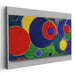 The artist's style resonates with the avant-garde works of Wassily Kandinsky and Sonia Delaunay, known for their exploration of geometric forms and vibrant color palettes. The overlapping circles in this piece convey a sense of depth and movement, almost as if the shapes are in a lively dance on the canvas.