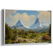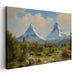 Introducing 'Glimpse of Nature's Serenity,' a mesmerizing landscape canvas art print that transports you to a world of serene beauty and tranquility, capturing the essence of a mountainous region reminiscent of the majestic Alps. This breathtaking artwork showcases two towering snow-capped peaks dominating the scene, reaching for the sky adorned with soft, billowing clouds, creating a scene of awe-inspiring grandeur.