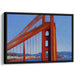 Introducing 'Golden Radiance Echoes Softly,' a captivating canvas art print that beautifully captures the iconic view of the Golden Gate Bridge, showcasing its grandeur against the serene beauty of its surroundings. This artwork masterfully depicts the bridge in a striking shade of red, set against a clear blue sky and distant rolling hills, creating a scene that exudes both vibrancy and tranquility.