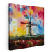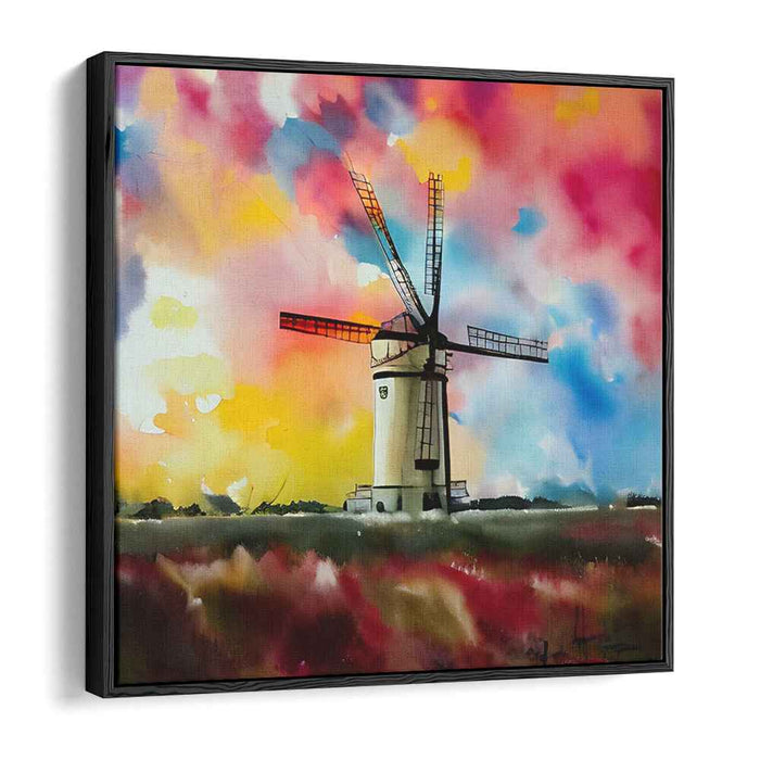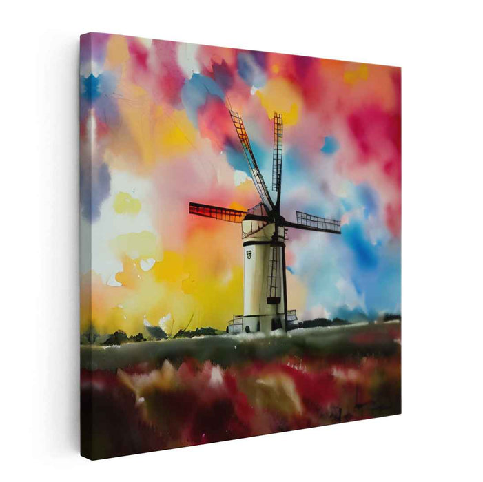 Gusty Plains Perspective: Colorful Windmill Landscape Canvas Art