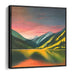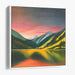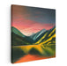 Introducing the mesmerizing canvas art print, 'Harbor of Solitude,' a breathtaking masterpiece that transports you to a tranquil mountain lake at sunset, capturing a moment of serene beauty and natural awe. This captivating artwork showcases a serene lake mirroring the vibrant hues of the sky and lush hills, all embraced by the majestic mountains standing as silent sentinels.