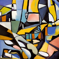 The artist's deft technique expertly balances sharp lines with fluid curves, creating a harmonious blend of structure and movement. This contemporary masterpiece evokes a sense of intellectual curiosity and energetic vibrance, resonating with the innovative spirit of artists like Pablo Picasso and Juan Gris, pioneers of Cubism.