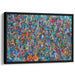 Introducing 'Heartstrings Unraveled,' an enchanting abstract expressionist canvas art print that orchestrates a visual symphony of colors and abstract forms, captivating viewers in a mesmerizing dance of hues and shapes. This vibrant piece is dominated by a cool and calming backdrop of vivid blues, harmoniously complemented by fiery reds, bright oranges, lush greens, and sunny yellows that punctuate the canvas, infusing it with warmth and energy.
