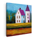 Homestead Reverie: Vibrant Country Houses Landscape Canvas Art Print