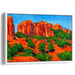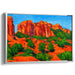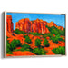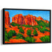 Step into the mesmerizing world of 'Horizon Essence: A Vivid Landscape Masterpiece,' a captivating canvas art that transports you to a realm of towering red rock formations against a brilliant azure sky. This artwork is a symphony of rich, saturated reds and oranges, skillfully portraying the rugged texture of the cliffs, harmoniously contrasted with lush green trees scattered throughout the scene.