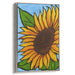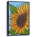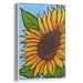 The sunflower's petals exude movement and vitality, each uniquely shaped and shaded to provide depth and texture. The background, in a calming sky blue, accentuates the sunflower's vibrant colors, while the green leaves with bold outlines add an extra layer of color and detail. The artist's combination of bold lines and flowing brushstrokes creates a dynamic and engaging piece that captures the essence of this cheerful and uplifting flower.