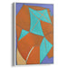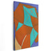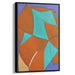 The primary colors of rich earthy orange and vivid turquoise take center stage against a deep, serene blue background, offering a striking contrast that draws the eye. The artist's skillful use of sharp lines and clean edges defines each shape with precision, enhancing the overall structure and form of the piece.