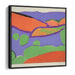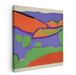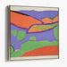 The canvas comes alive with a dominant ultramarine blue sky that sets the stage for sweeping curves and bold shapes symbolizing hills and water bodies in vivid shades of orange, green, and red. The artist's minimalist approach forgoes intricate details in favor of broad, unmodulated swathes of color, capturing the tranquil allure of a stylized landscape.