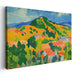 The artist's bold and fluid brushstrokes infuse the artwork with a dynamic and lively essence, echoing the spirit of Fauvism. This art movement is known for its vibrant, non-naturalistic colors and emphasis on expressive brushwork, akin to the vitality captured in 'Lush Mountain Vista.'