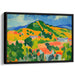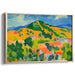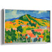 Step into the vivid beauty of 'Lush Mountain Vista,' a mesmerizing landscape canvas art print that whisks you away to a tranquil and colorful countryside. This artwork showcases a grand mountain as the focal point, its peaks swathed in deep blues and greens, exuding a profound sense of calm and resilience.