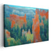 Introducing 'Majestic Canyon Dreams,' a vibrant landscape canvas art print that transports viewers to the awe-inspiring landscapes of the American Southwest, reminiscent of the iconic scenery of Bryce Canyon National Park. This captivating artwork features towering rock formations painted in vibrant hues of orange and red, beautifully contrasting with lush green pine trees in the foreground.
