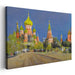 Introducing "Majestic Landmarks," a vibrant canvas art piece that eloquently captures the grandeur of historical architecture, reminiscent of the iconic Saint Basil's Cathedral in Moscow, Russia. This captivating artwork immerses viewers in a scene showcasing a series of vibrant, onion-shaped domes adorned in striking green and gold hues, standing out against a vivid blue sky.