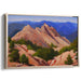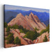 Introducing 'Majestic Slopes Retreat,' a mesmerizing landscape canvas art that transports viewers to the serene grandeur of a rugged mountain range basking in the gentle radiance of sunlight. This captivating artwork showcases a central mountain, its steep inclines bathed in a harmonious palette of warm oranges and soft pinks, standing out vividly against the cool blues and deep purples of the distant peaks. The foreground is adorned with verdant greenery, infusing the scene with a lively touch of nature.
