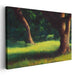 Introducing "Mystical Woods Tapestry: Enchanting Forest Landscape," a mesmerizing canvas art print that beckons viewers into a tranquil forest illuminated by the gentle caress of sunlight filtering through the lush canopy. This captivating artwork showcases a serene woodland scene dominated by two majestic trees, their gnarled trunks and textured bark standing out amidst a verdant undergrowth.