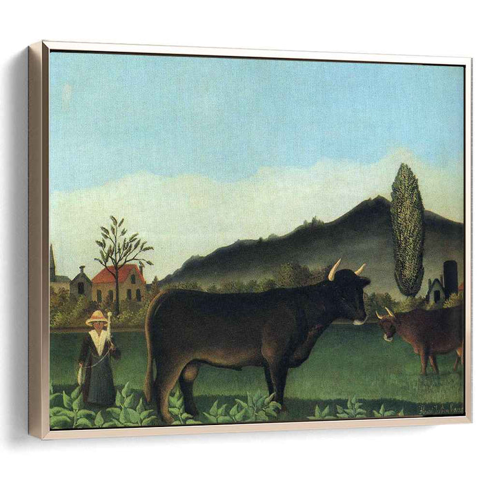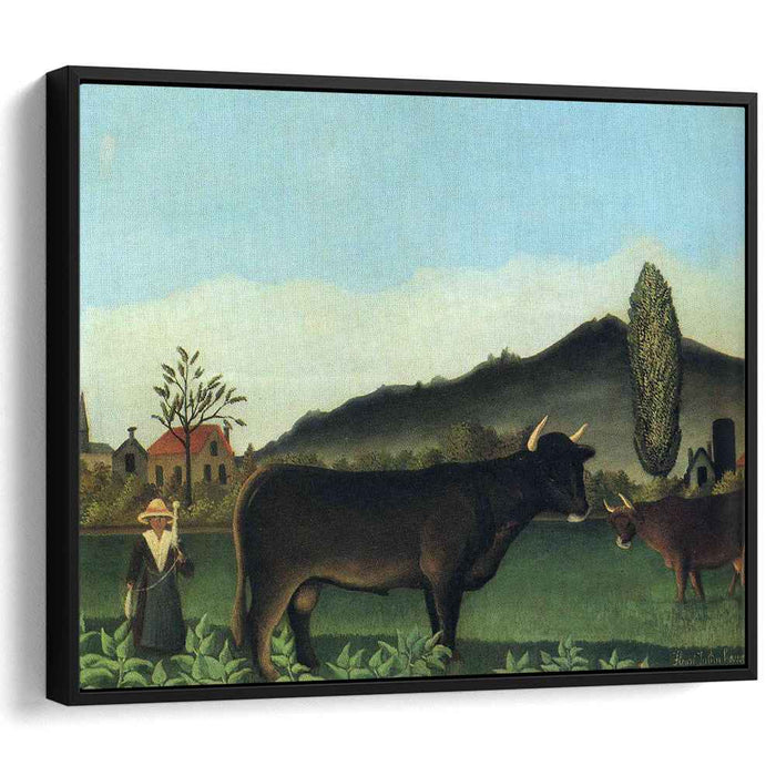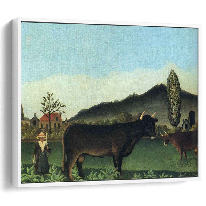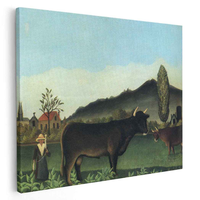 Step into the enchanting world of Henri Rousseau's "Landscape with Cow," painted in 1886. This captivating work, now available as a high-quality canvas print, invites you to explore the unique artistic vision of one of the most celebrated figures in the history of art.