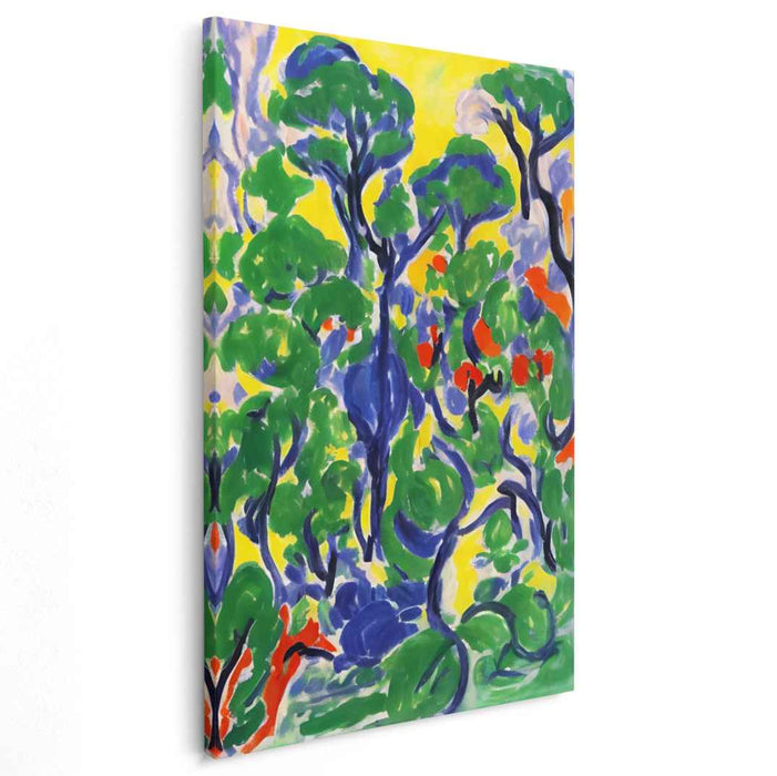 Introducing 'Savage Garden Symphony: Fauvist Expression of Nature,' a mesmerizing canvas art that immerses viewers in a vibrant and energetic forest scene, bursting with color and life. This dynamic artwork is a celebration of nature's exuberance and vitality, capturing a dense grove of trees in a bold and expressive style that is reminiscent of the Fauvist movement.
