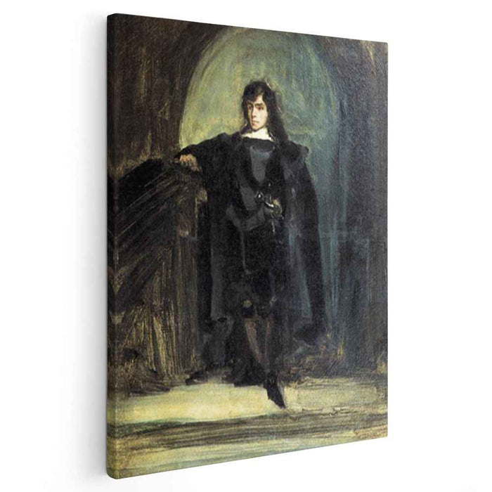 Immerse yourself in the captivating world of Eugène Delacroix's "Self-Portrait as Hamlet," painted in 1821. This introspective masterpiece, now available as a stunning canvas print, invites you to unravel the depths of the artist's psyche and explore the timeless themes of identity, melancholy, and artistic expression.