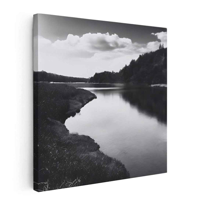 "Still Waters Reflection" exudes a timeless elegance reminiscent of the iconic works of Ansel Adams, celebrated for his emotive monochromatic landscapes. The subtle gradation from light to dark guides the viewer's gaze, adding depth and scale to the picturesque landscape, echoing the principles of fine art photography and pictorialism.