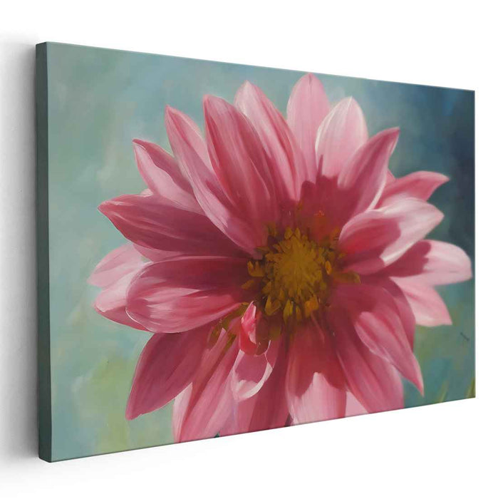 Transform your home with 'Subtle Petal Elegance,' a realistic pink dahlia canvas art print that adds a touch of elegance and tranquility to any room. Let this captivating masterpiece infuse your space with the serenity of a blooming garden, inspiring moments of reflection and appreciation for nature's beauty.