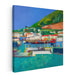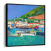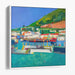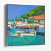 Introducing "Sunset Palette Splendor," a mesmerizing canvas art print that transports viewers to a bustling coastal village teeming with maritime vitality, all depicted through a contemporary lens. This dynamic artwork pulsates with vivid colors and a modern interpretation of seaside life, inviting onlookers into a world of vibrant energy and coastal charm.