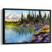 Introducing "Tranquil Alpine Reflections," a mesmerizing watercolor canvas art that captures the essence of a serene lakeside setting, blending the calmness of nature with a vibrant color palette. This exquisite artwork showcases a reflective lake foreground, embraced by lush evergreen trees and a burst of colorful foliage, guiding the observer's gaze towards a grand snow-capped mountain in the distance.