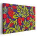 Introducing 'Tropical Garden Delight,' a vibrant floral abstract canvas art print that transports viewers into a lush tropical garden bursting with life and color. This captivating artwork features bold red flowers intertwined with lively green leaves against a deep, rich purple backdrop, creating a visually stunning and dynamic composition.