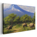 Introducing 'Tusk Tales Whispered by Wind: Serene Elephant Herd in African Savannah,' a captivating canvas art that immerses viewers in the tranquil and awe-inspiring African landscape, featuring the majestic presence of Mount Kilimanjaro as its backdrop. This masterpiece showcases a small herd of elephants gracefully navigating through lush greenery, harmonizing with the earthy tones and vibrant greens of their surroundings.