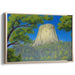 The artist employs a realistic style infused with romantic elements, skillfully playing with light and shadow to enhance the sense of scale and magnificence of the Devils Tower. This approach mirrors the techniques used by renowned artists like Albert Bierstadt and Thomas Moran, known for their evocative landscape paintings.