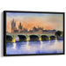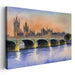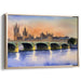 Introducing 'Urban Pastel Reverie: Serene Watercolor Cityscape,' a mesmerizing artwork capturing the iconic Westminster Bridge and the Palace of Westminster in London at dusk. This exquisite piece is painted in a stunning watercolor technique, showcasing a serene transition from day to night with a sky painted in warm oranges, soft pinks, and calming blues.