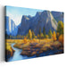 Immerse yourself in the tranquil beauty of "Valley Vista Harmony," a majestic mountain valley landscape canvas art print that captures the essence of a serene autumnal valley nestled amidst grand mountains. This captivating painting transports you to a peaceful setting where nature's vibrant fall colors dance harmoniously.