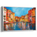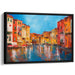 Step into the enchanting world of 'Venetian Radiance: Colorful Canal Impressionist Canvas Art,' a mesmerizing piece that transports you to the picturesque charm of a serene Venetian canal. This artwork captures the essence of Venice with its warmly lit, colorful buildings that elegantly reflect on the tranquil waters, creating a scene of unparalleled beauty and vibrancy.