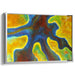 Introducing 'Vibrant Arteries,' an electrifying abstract expressionist canvas art print that mesmerizes viewers with its explosion of vivid colors and organic forms. The artwork features a central, tree-like structure in deep blues and reds, branching out in a dynamic, almost pulsating manner, set against a backdrop of radiant yellows and greens that intensify the composition's depth and movement.