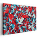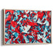 The bold reds and cool blues in this piece, interspersed with soft whites, create a harmonious yet visually stimulating palette that adds depth and complexity to the artwork. The intricate shapes, reminiscent of shattered glass or crystalline structures, offer a sense of movement and energy, drawing the viewer into a world of dynamic interplay between color and form.