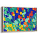 The canvas is alive with a kaleidoscope of hues, including bright reds, oranges, yellows, greens, and turquoises that infuse the piece with a sense of playfulness and vitality. The circles and organic shapes seem to float and intertwine, exuding a rhythmic energy that pulls the viewer into a whirlwind of color and motion.