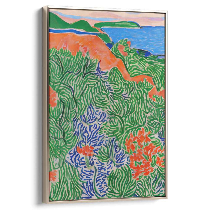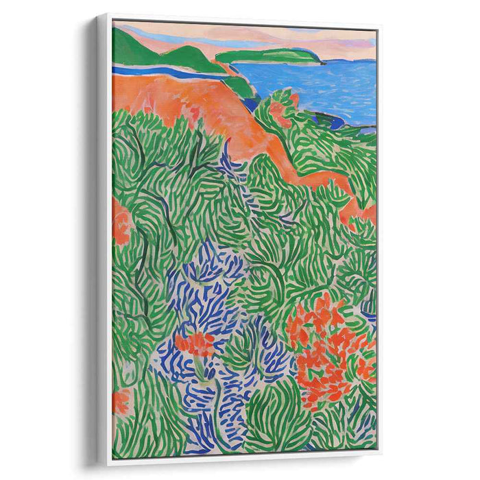Step into the vivid and enchanting world of 'Vivid Shores Impressions: Fauvist-Inspired Coastal Vista,' a mesmerizing canvas art piece that transports you to a tranquil coastal haven bursting with vibrant hues and lush tropical greenery. This artwork is a celebration of color and form, capturing the essence of a serene coastal scene with a bold and expressive style that mesmerizes the viewer.