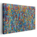 The piece is a celebration of color, with a dominant tranquil blue setting the stage for a burst of secondary colors like fiery reds, sunny yellows, and vibrant oranges. These intense shades mingle with softer purples and greens, creating a tapestry of complexity and depth that invites exploration and contemplation.