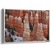 Introducing 'Weathered Whispers,' a mesmerizing canvas art print that transports you to the awe-inspiring beauty of Bryce Canyon's iconic hoodoos. This artwork beautifully captures the grandeur of the tall spire-shaped rock formations that stand proudly amidst the canyon's serene landscape, creating a remarkable contrast against the soft greens of the surrounding forest.