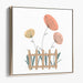 Introducing 'Whimsical Garden Blooms,' a delightful canvas art piece that encapsulates the tranquility and simplicity of a charming garden setting. This artwork features three elegant flowers, each elegantly rising behind a picturesque wooden fence with delicate, slender stems.