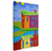 Introducing "Whimsical Village: Colorful Naive Art Canvas Print," a delightful and vibrant piece that transports viewers into a whimsical village brimming with color and charm. This artwork captures a playful and almost childlike interpretation of a village scene, where houses painted in bold, bright hues take center stage.