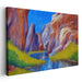 'Whispering Canopy Symphony' aligns harmoniously with the impressionist art movement and shares affinities with renowned artists such as Claude Monet and Vincent van Gogh. The primary subjects of this artwork—majestic rock formations and a tranquil waterway meandering through the canyon—are accentuated by the artist's masterful play of light and shadow, imbuing the scene with dynamism and allure.