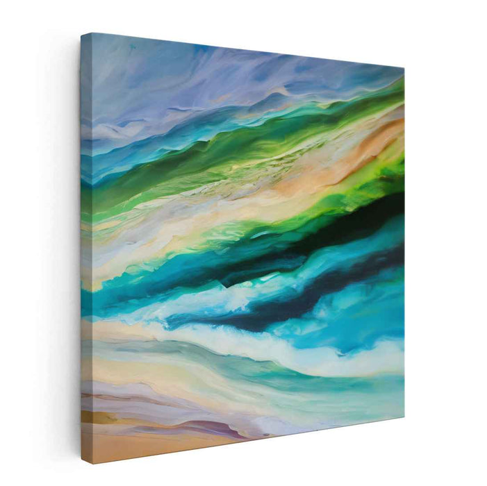 The artwork's dynamic composition pulsates with life, inviting you to explore its depths as if witnessing the rhythmic breaths of the earth itself. Layered streaks mimic the rolling contours of hills and valleys, creating a sense of perpetual motion and evolving landscapes. The artist's use of broad, sweeping brush strokes and masterful blending techniques imbues the piece with a rich texture, adding layers of depth and intrigue to the viewer's experience.