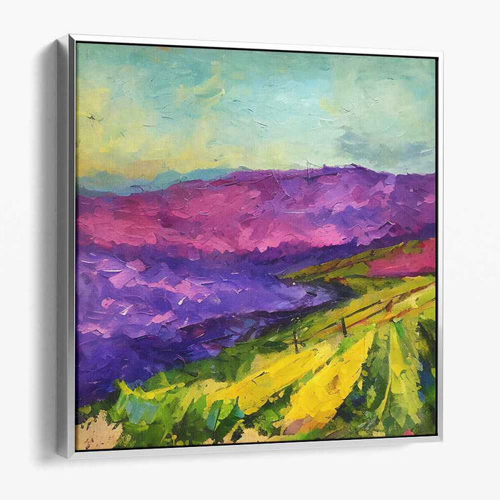 Step into the mesmerizing world of 'Whispering Wind Tones: Impressionist Landscape Canvas Art,' a masterpiece that immerses viewers in a vibrant and dynamic landscape teeming with nature's splendor. This captivating artwork showcases a sweeping vista of a rolling terrain beneath a lively sky, inviting onlookers on a visual journey through a tapestry of bold, expressive brush strokes and a rich, harmonious palette.