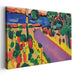 Step into the vibrant world of 'Wild Brush Lake Trail: Fauvist-Inspired Lakeside Pathway Canvas Art,' a mesmerizing piece that encapsulates the charm of a picturesque pathway meandering through lush greenery towards a tranquil lake under a stunning sunset sky. This artwork bursts with a kaleidoscope of colors, featuring vivid blues, intense yellows, deep greens, and accents of red and orange that infuse the scene with warmth and depth.